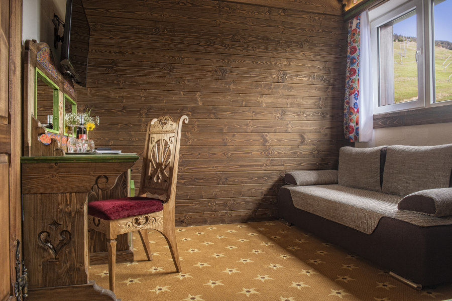 Tatry ako na dlani priamo z postele hotelového Apartmánu Komfort. Pozostáva zo spálne, obývacej časti a je určený pre dvoch dospelých na manželskej posteli a dve deti na prístelke.